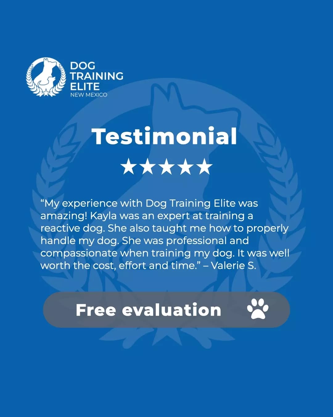 This has truly been one of the most rewarding and inspiring experiences I have ever had training my puppy to be a service dog! Our trainer Kayla D. Is absolutely fantastic. Her customer service, her insight and knowledge to animal behavior is amazing and my puppy has flourished. She is patient, kind and loving and I couldn’t have asked for a better trainer. The Dog Training Elite New Mexico program is beyond amazing and your dog will learn so much more than I ever thought possible. Highly recommend and thoroughly appreciate all they do for dog training.